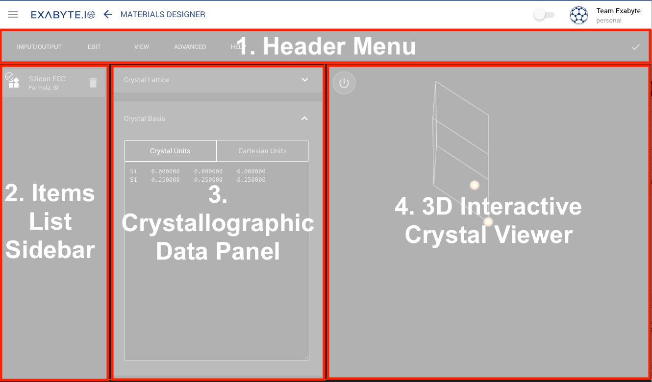 The Exabyte platform provides a graphical crystal structure viewer and builder which we refer to as the Materials Designer, and that will now be reviewed in detail. This designer essentially makes it possible to conceive and then save new crystal structures from scratch.